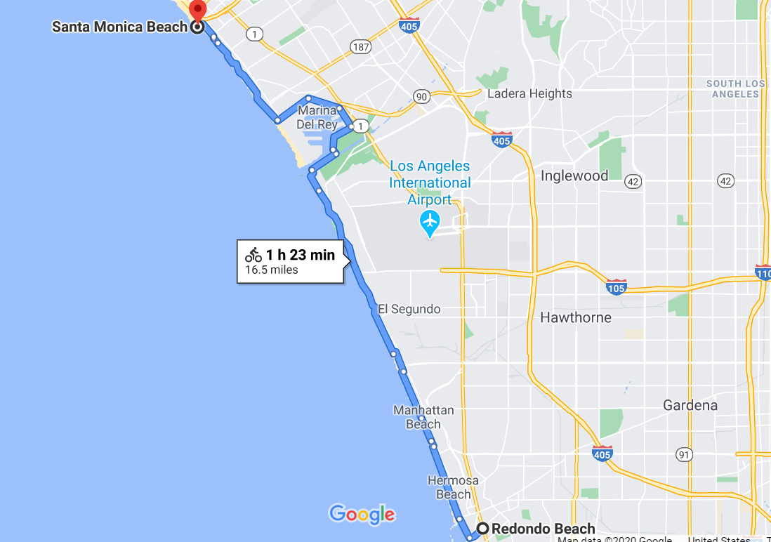 The beauty of this bike path comes down to the fact that for the majority of the ride, it keeps you along the coast, it goes through all of the main South Bay beaches in addition to two iconic harbors.